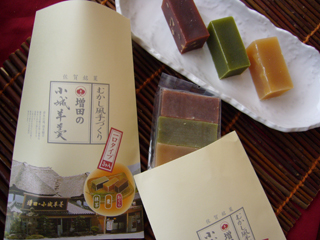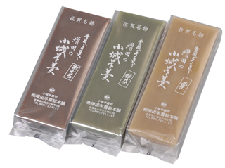 側が砂糖でかたくなり、中はやわらかい昔ながらの手造り小城羊羹。